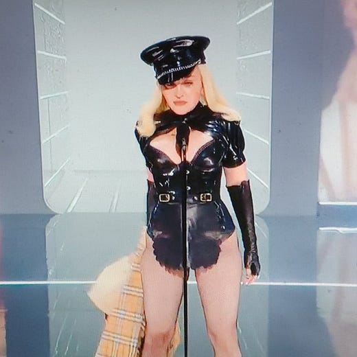 Madonna? WTH? Maybe there's a lesson in there for Doja Cat and Cardi B: don't show up at the 2060 MTV Awards show in the same outfit you wore in the 20s, even if it still fits.