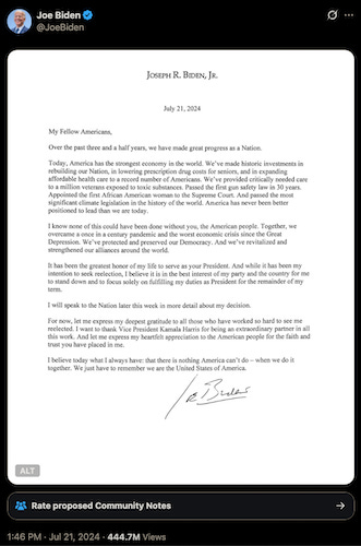 Reminder: We still don’t know what happened to Joe Biden the day he resigned from the 2024 presidential campaign via tweet during Sunday brunch, in the middle of a week-long disappearance from the public eye.