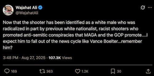 Here’s another dummy who hates white men so much, he forgot the shooter isn’t supposed to be one of them: